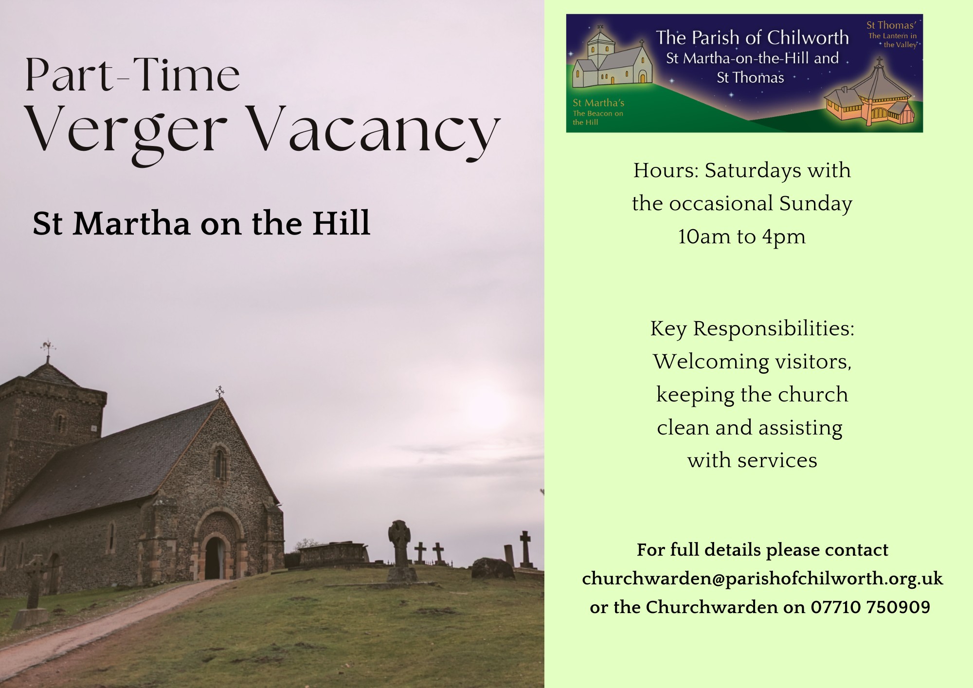 Palm Sunday - we will walk a donkey up to St Martha’s, have a short service and then picnics to follow.